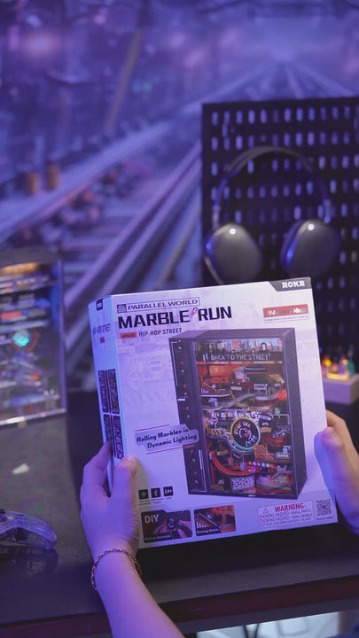 Bring rhythm and motion to your desk with the ROKR Hip-Hop Street Marble Run 3D Puzzle — a futuristic fusion of mechanics, light, and music. Featuring sound-controlled LED lights, this dynamic marble run flashes in sync with your favorite beats, transforming every build into a live performance.