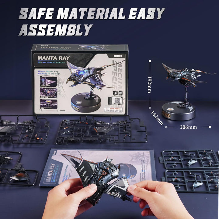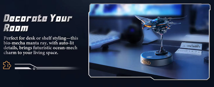 Manta Ray Mechanical 3D Puzzle Kit Cyberpunk Style Model Challenging DIY Project Unique Desktop Decor Gift for Adults
