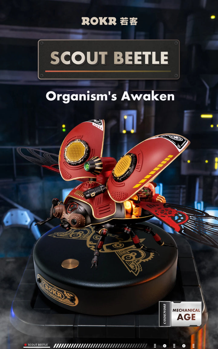 Unleash your inner engineer with the ROKR Scout Beetle MI02, a striking fusion of steampunk design and mechanical craftsmanship. Inspired by real beetles and powered by imagination, this 3D DIY puzzle kit captures the essence of futuristic art and mechanical precision.