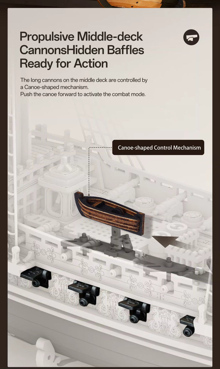Built from 603 precision-cut wooden pieces, this model offers over 10 hours of rewarding assembly. The design includes 26 dual-layered cannons, a rotating rudder, and gold-foil accents that give it a commanding, museum-quality presence. Each piece fits perfectly with no glue required, making it both durable and easy to assemble.