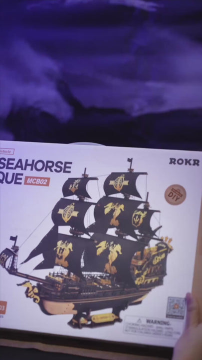 Embark on a nautical adventure with the ROKR Seahorse Barque, an exquisite 1:100 scale 3D wooden puzzle inspired by Baroque-era warships. This elegant model features a classic three-mast design, 13 detailed sails, and intricate deck carvings that capture the spirit of the Age of Sail.